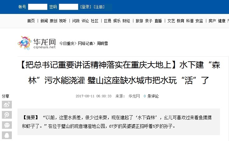 ?華麗蛻變 璧山打造會“呼吸”的“水下森林”
