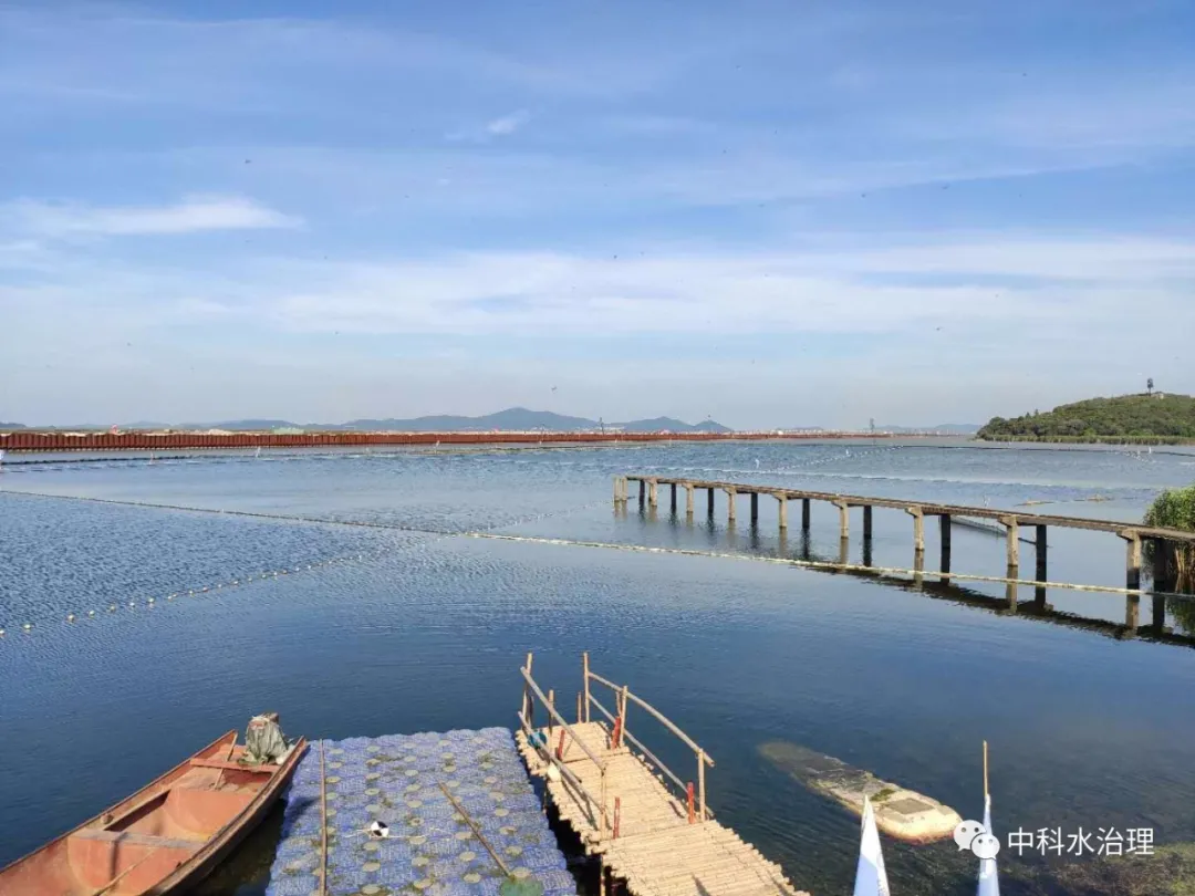 無錫太湖梅梁湖人工種植水生植物試驗項目施工后,湖區(qū)水域由原來的菱、藍(lán)藻覆蓋的富營養(yǎng)化渾濁水體轉(zhuǎn)變成水體透明、湖面波光粼粼、沉水植物清晰可見、水下森林效果明顯的良好水體。