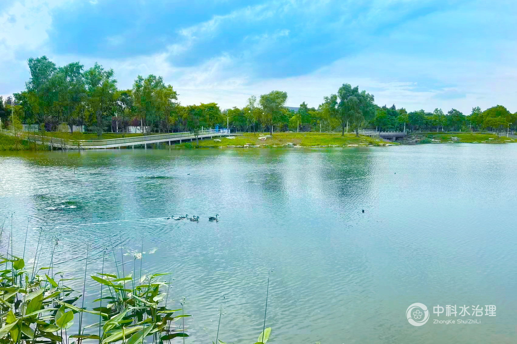 水生態環境治理工程分為東溝、藕塘和大湖區3個區域。修復前水質在《地表水環境質量標準》劣V類標準;修復后東溝區域水質達到《地表水環境質量標準》III類標準,藕塘區域和大湖區區域水質穩定在《地表水環境質量標準》IV類標準。